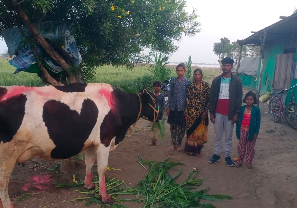 आम्ही मागील महीन्यात पाहूण्याची शेती पाहण्यासाठी गेलो होतो . मका, कापूस , कांदा , वांगी अशि चांगली पिके उभी होती शेती करणारे कुटुंब सुद्धा होते माझ्या पत्नी ने त्यांच्या साठी खाऊ नेलेला होता , त्यांनी खुध्दा आम्हाला चहा दिला , पण तो कोरा चहा होता . सहजच कारण विचारले “आपण कोरा चहा पिता का “? उत्तर एकून मन सुन्न झाले “ आमच्या कडे गाय होती , परंतु काही दिवसांपूर्वीच ती देवा घरी गेली . म्हणून आम्ही कोरा चहा पितो “ आमची परिस्थिती गाय घेण्याची आत्ता नाही , कारण पाऊस जास्त झाला व नुकसान झाले , त्यांची लहान लहान मुले खुप गोड होती पण काय करणार आता त्यांना दुध नाही . मन सुन्न झाले आम्हाला वाटले की मेडिकल कारणाने हे कोरा चहा पित असावेत मी व आमच्या कुटुंबाने चर्चा करून गाय भेट देण्याचे ठरवले. आमच्या शेतकऱ्यांला सांगून आज गाय पोच केली . आज मनाला खुप छान वाटत आहे गो - दान केल्याचे समाधान व ते पण योग्य लाभार्थ्यांनां.